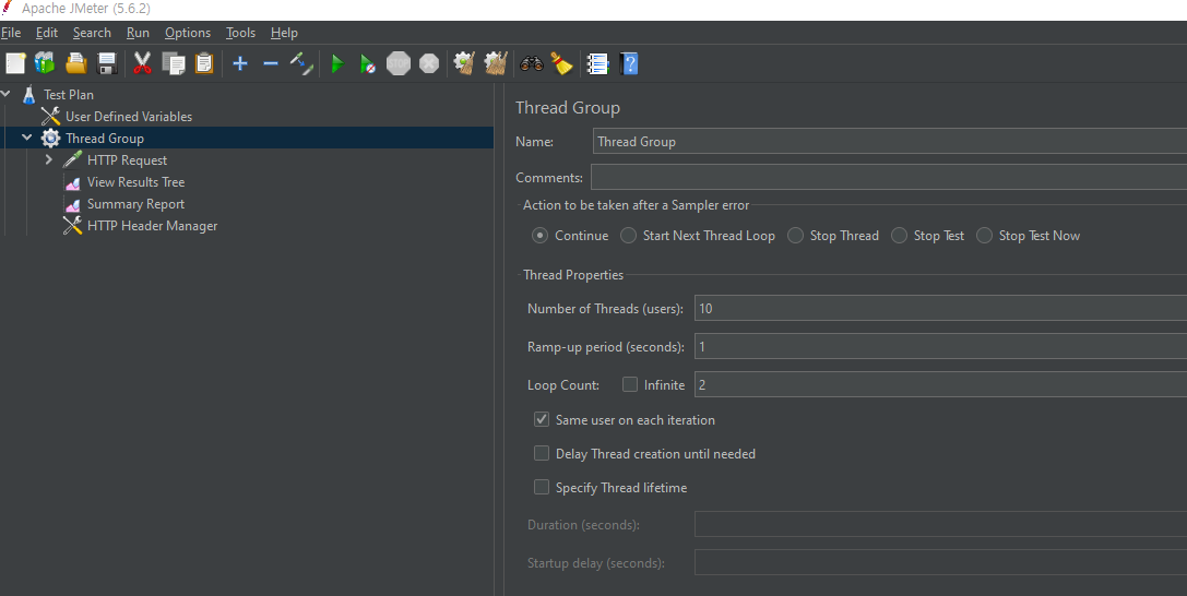 Loop Count : 테스트를 반복하는 횟수, Infinite - 무한대로 호출