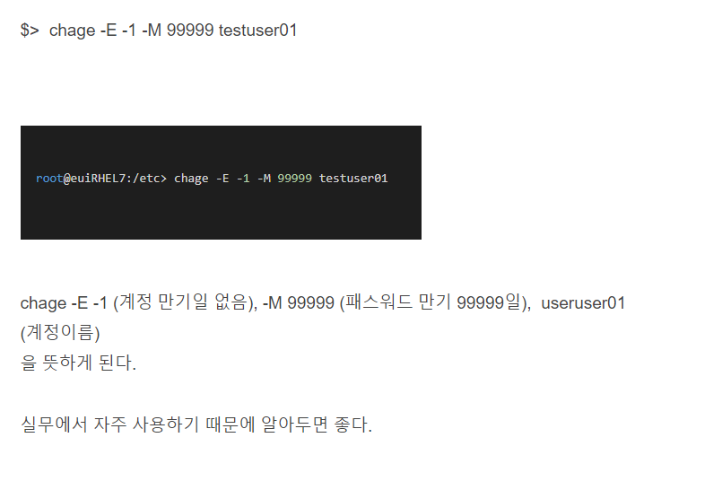 5) # chage -l ( 사용자 패스워드 사용기간 변경 )